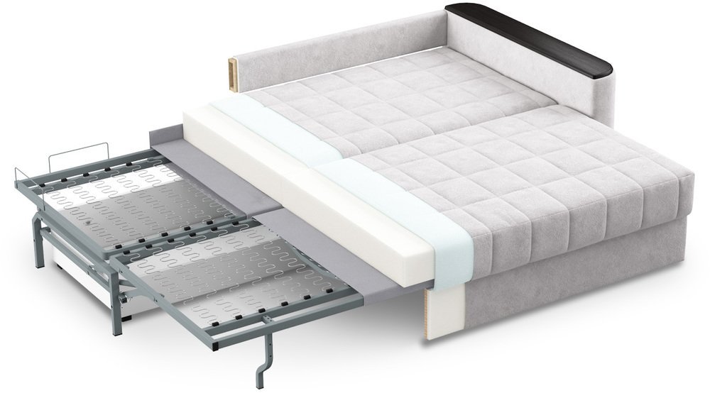 Механизм трансформации «Пантограф» подходит для ежедневного использования. Позволяет легко раскладывать и складывать диван, обеспечивая минимальный контакт дополнительных опор с напольным покрытием.