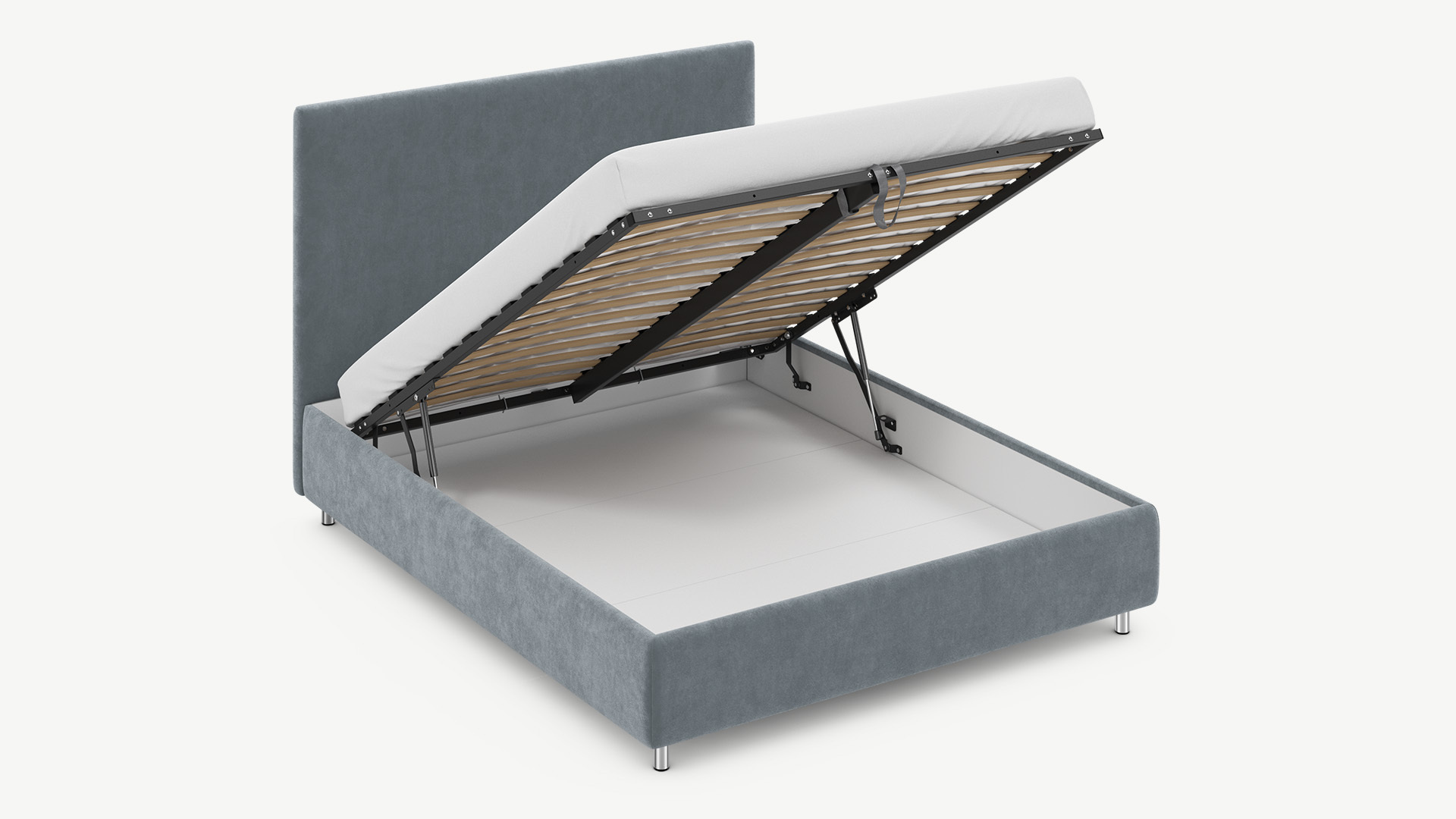 • Скрытая под основанием вместительная емкость без внутренних перегородок позволяет использовать всю площадь подкроватного пространства для хранения вещей.